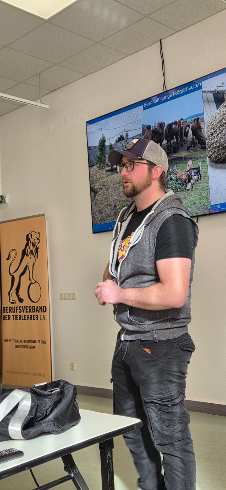 Nach der Abarbeitung der Tagesordnung hielt Tierpflegemeister Marlon Kröplin vom Elefantenhof Platschow einen Vortrag über Beschäftigung und Pflege von Circustieren. Herr Dr. Triphaus referierte zur Erlaubnis nach § 11 Tierschutzgesetz, insbesondere zur Antragstellung und zum Nachweis der Sachkunde. Amtstierarzt Dr. Pfeiffer sprach über die tägliche, verhaltensgerechte Beschäftigung mitgeführter „Wildtiere“ im Circus.